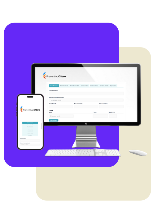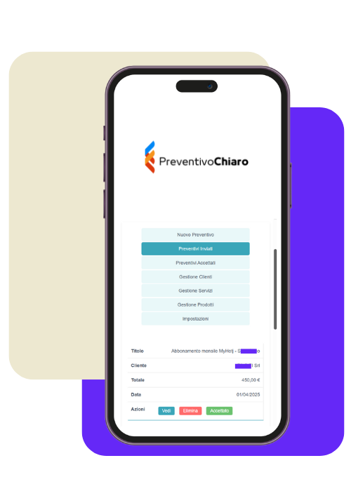 Con PreventivoChiaro dai un’immagine professionale alla tua attività e fai felici i tuoi clienti con preventivi chiari e veloci.
